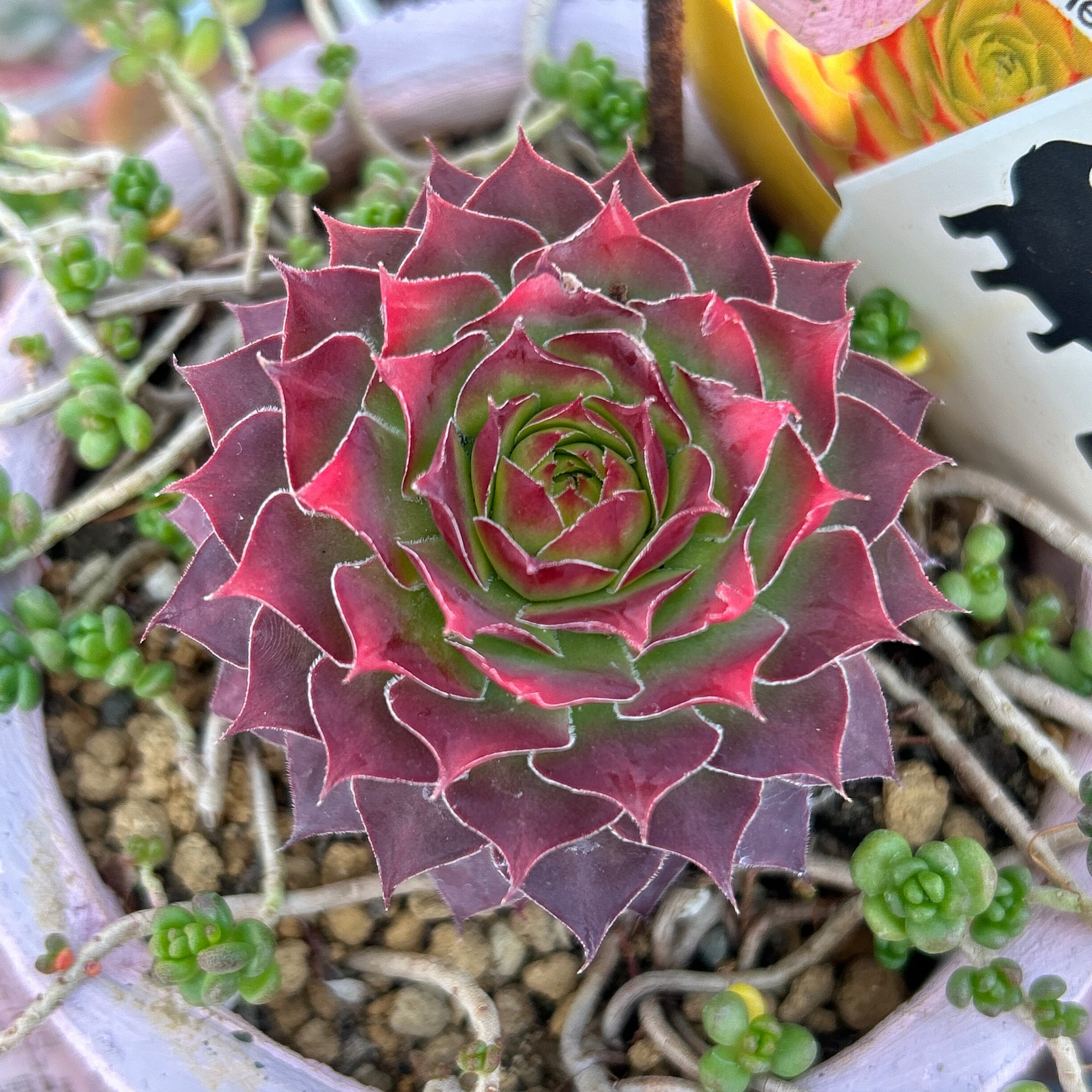 寄植えに手作りピックを