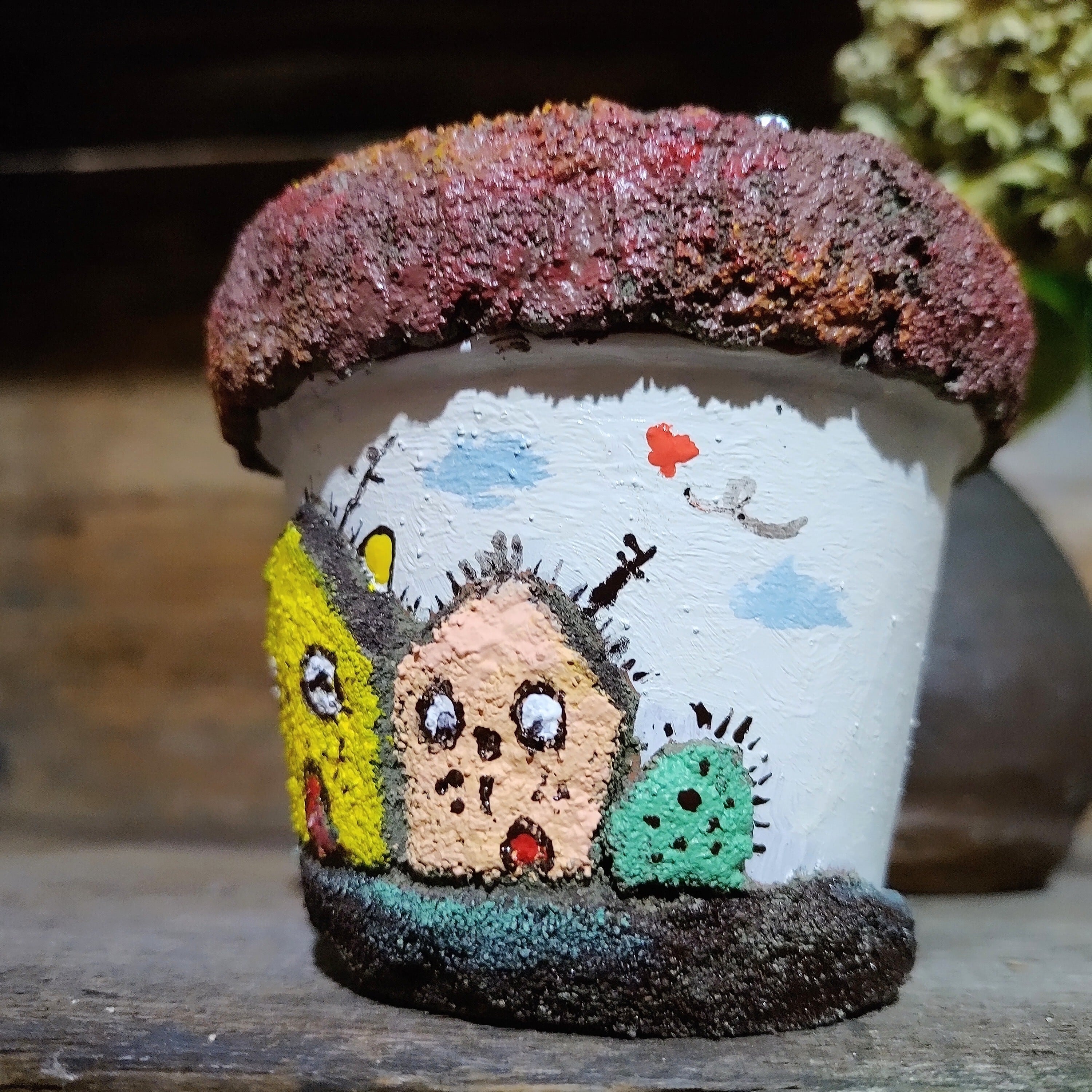 モルタルブサ猫House鉢(手作り)
