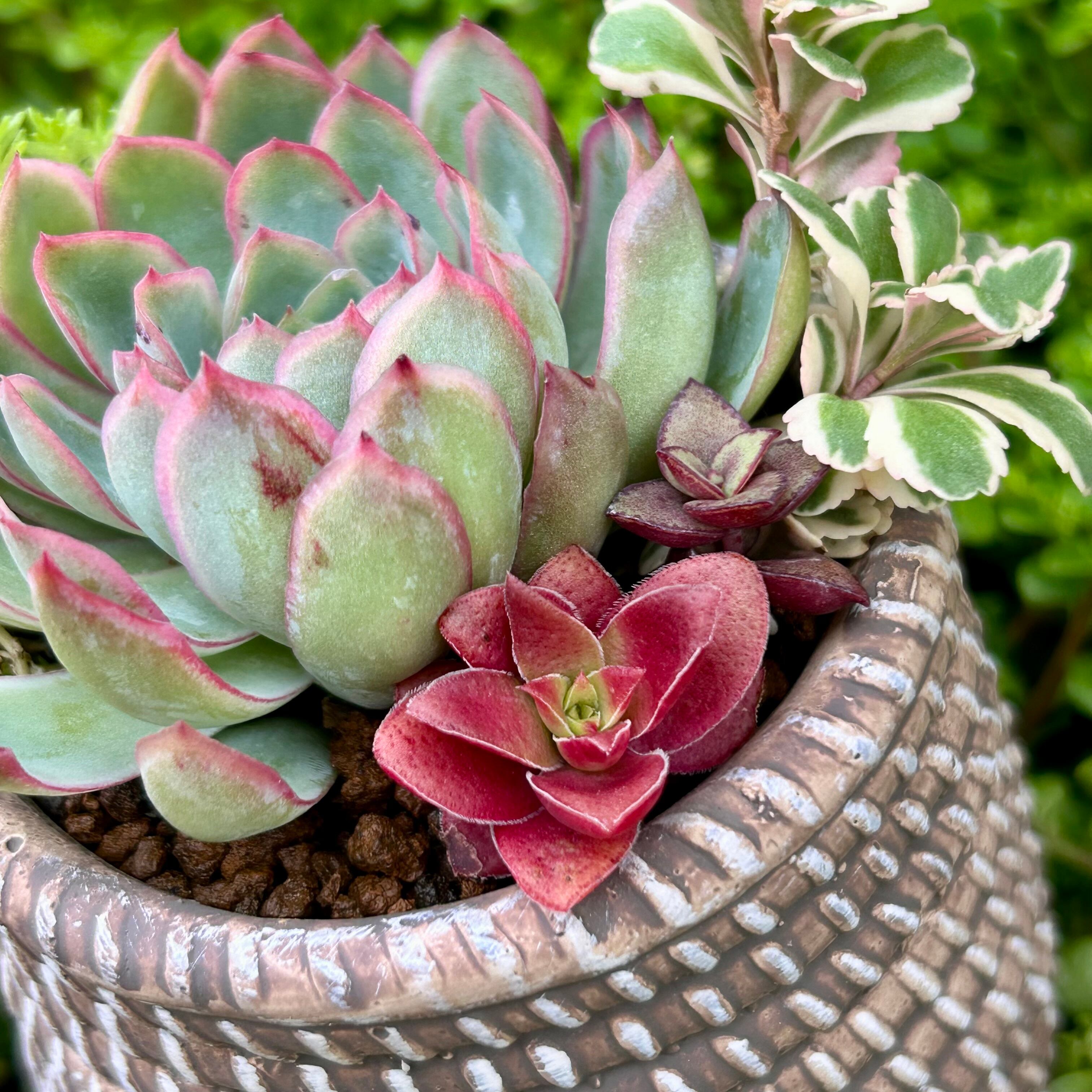 T)網かご風鉢(星影・セダム入り