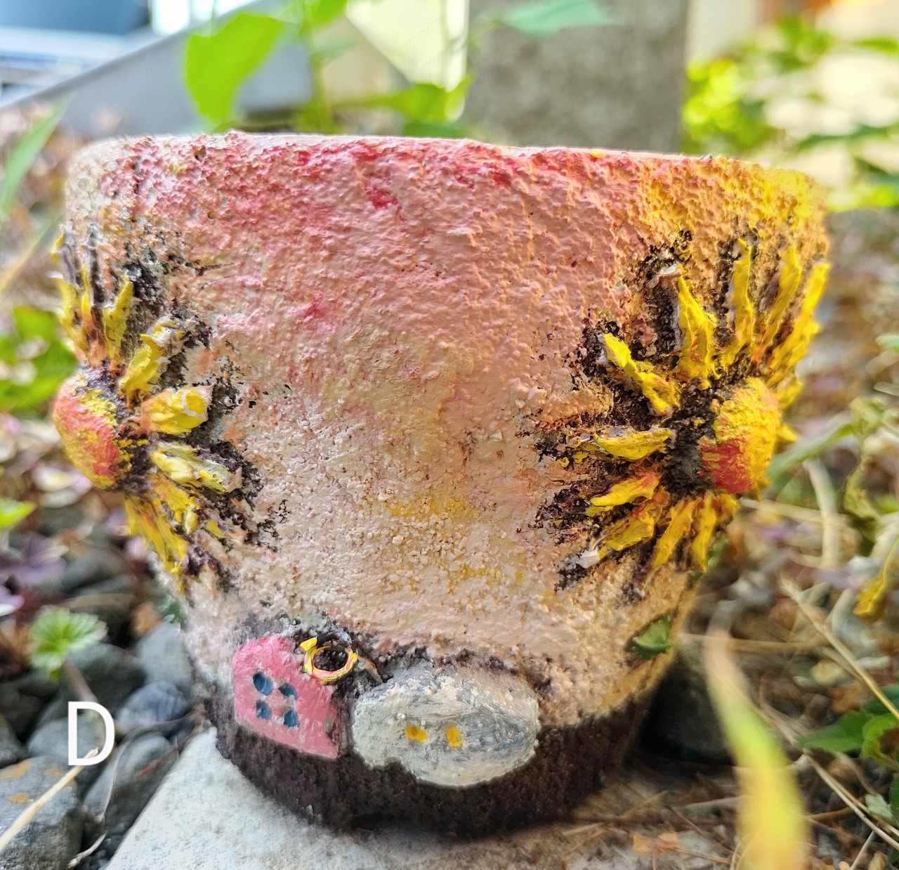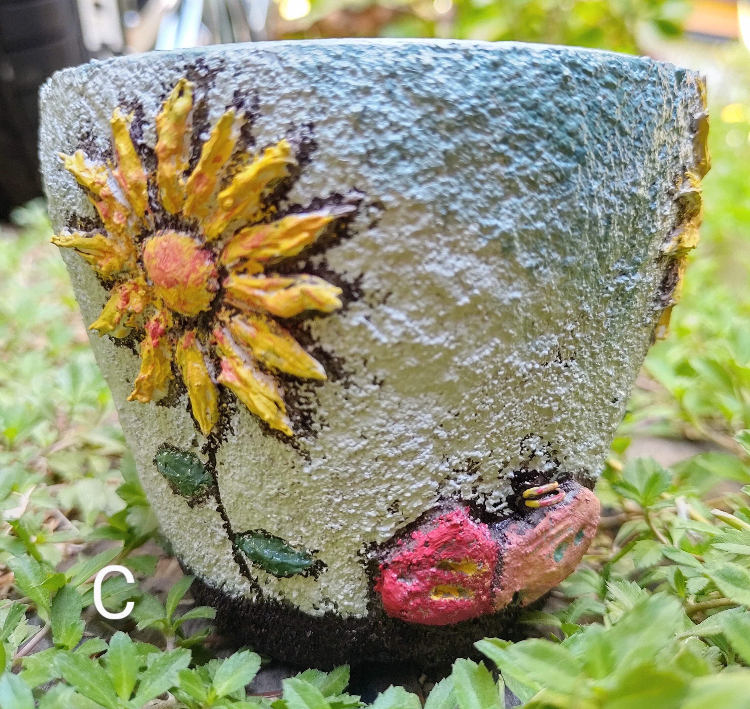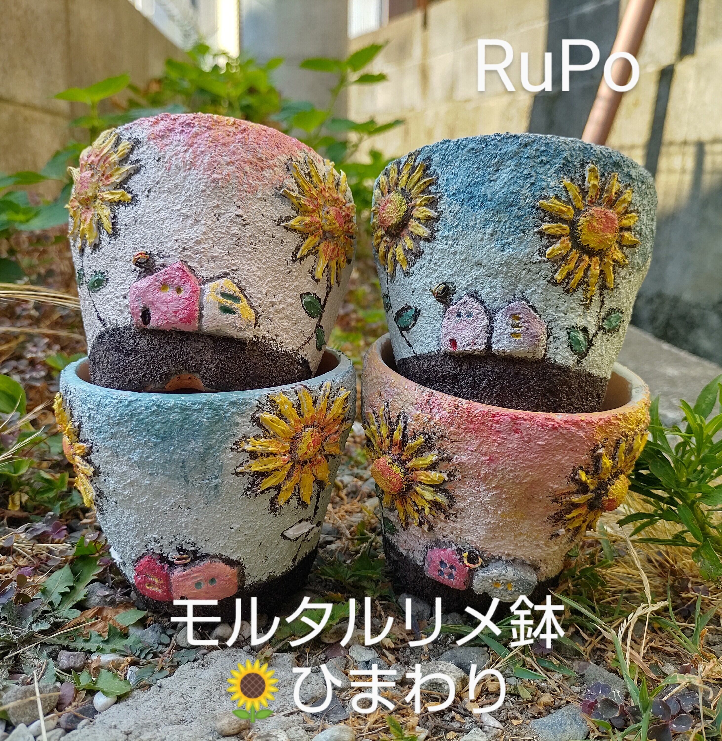 モルタルひまわりHouse鉢(手作り)