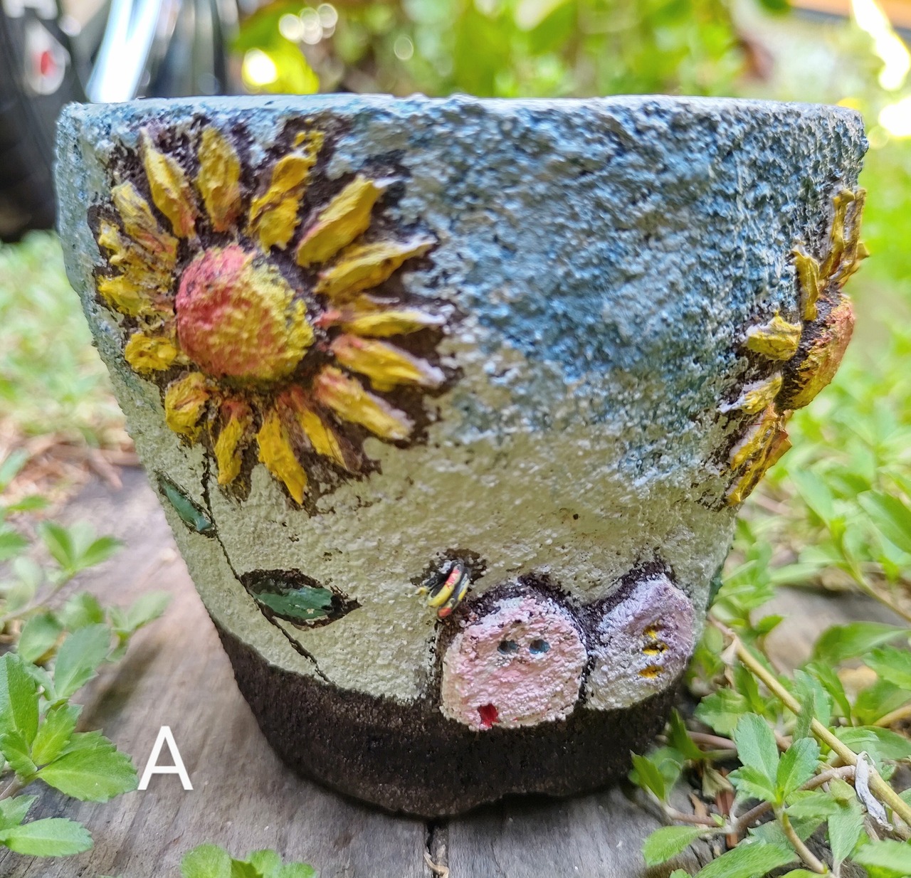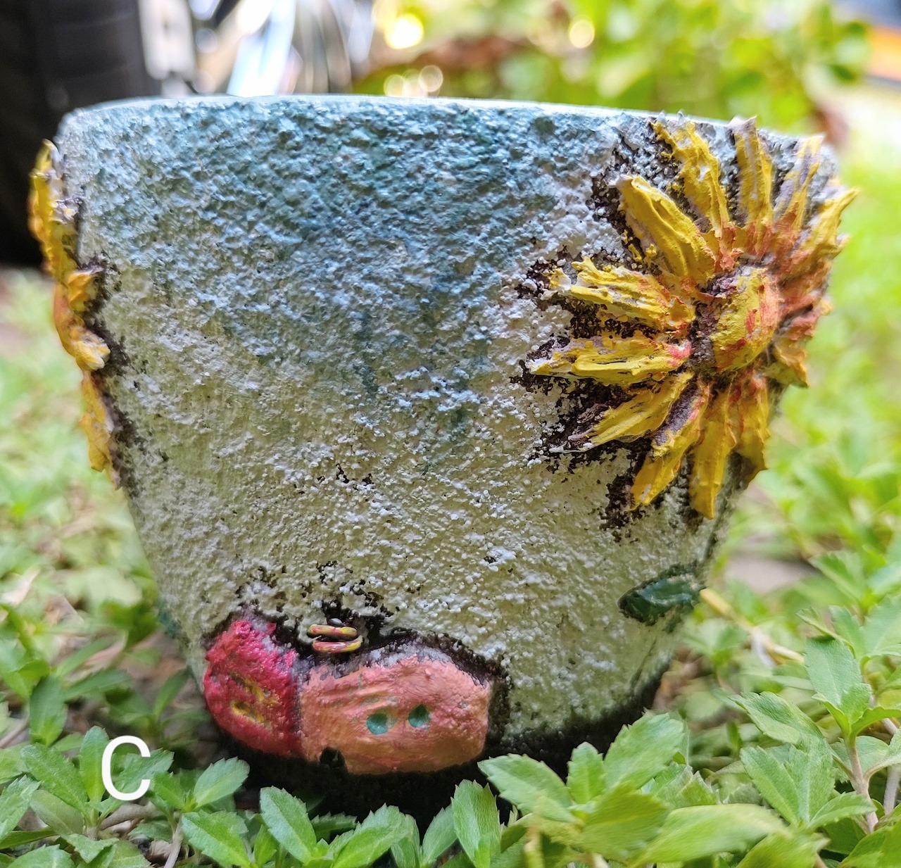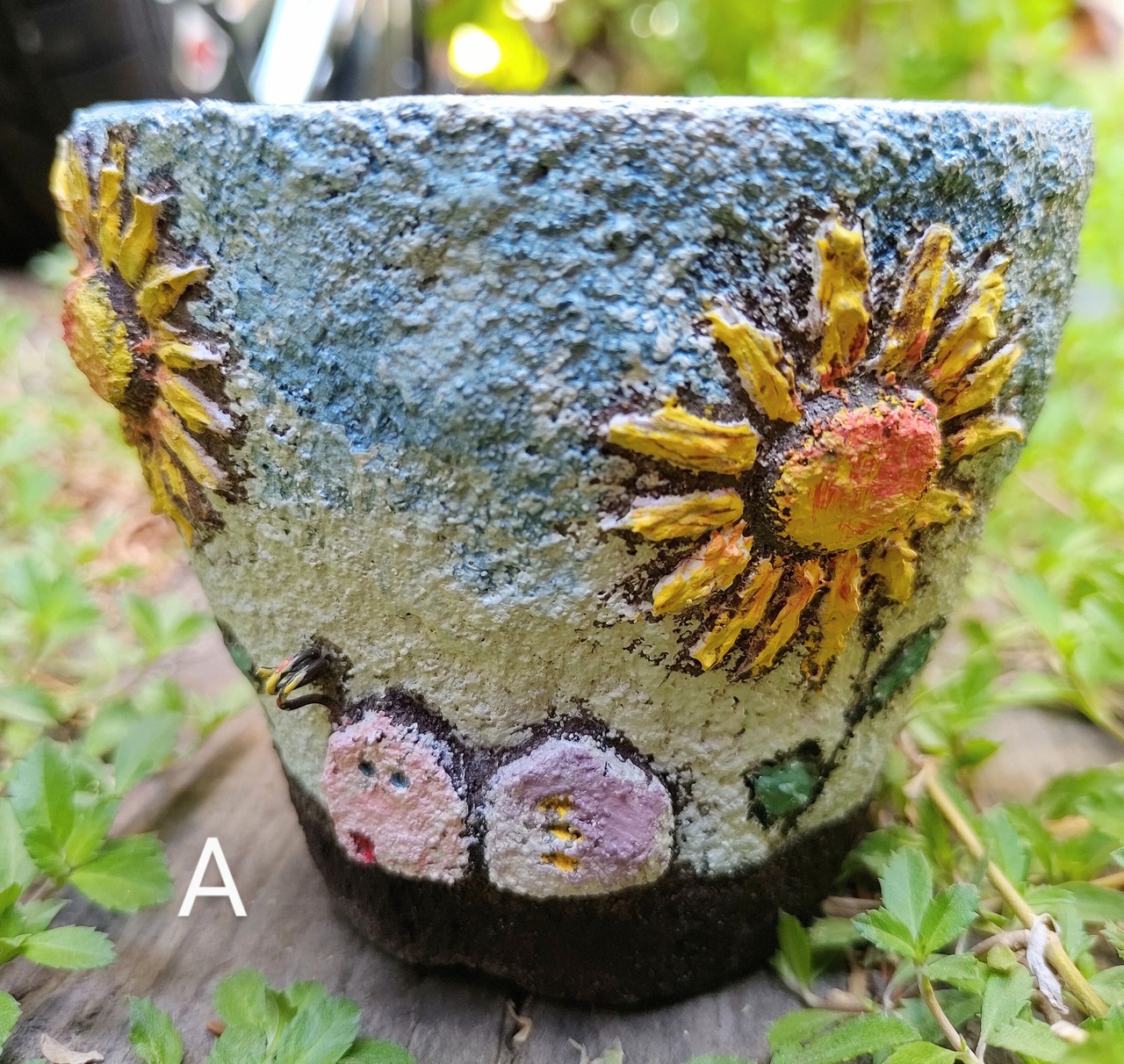 モルタルひまわりHouse鉢(手作り)